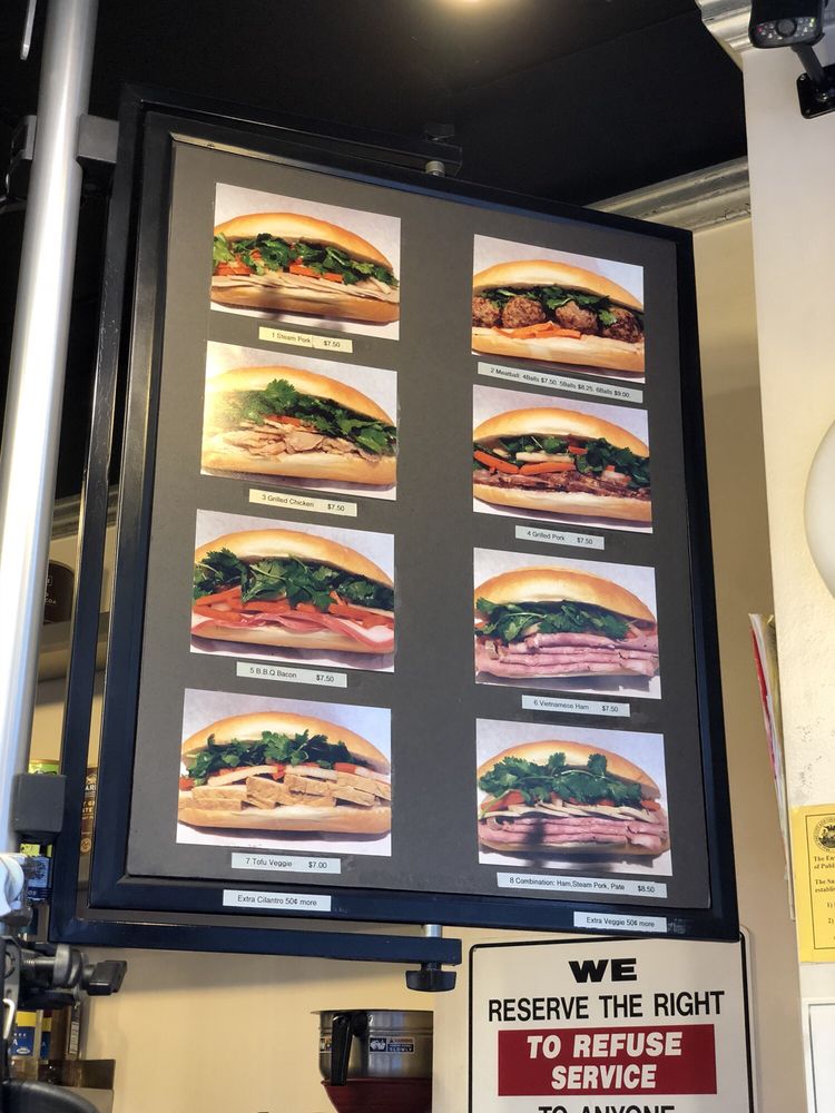 Cheese head ham, cold cut steam pork, pate, pickles carrot and daikon, cilantro, jalapeo, mayo, and house soy sauce.