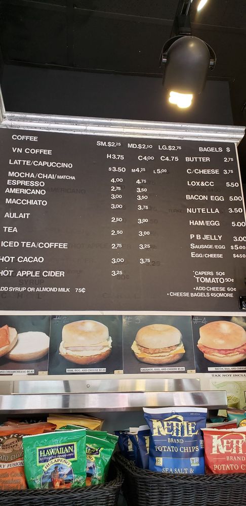 For those craving bagels, options like the Lox and Cream Cheese or Bacon, Egg, and Cheese are perfect for a quick breakfast on the go. Complement your meal with a refreshing Vietnamese Iced Coffee or a cozy cup of tea.